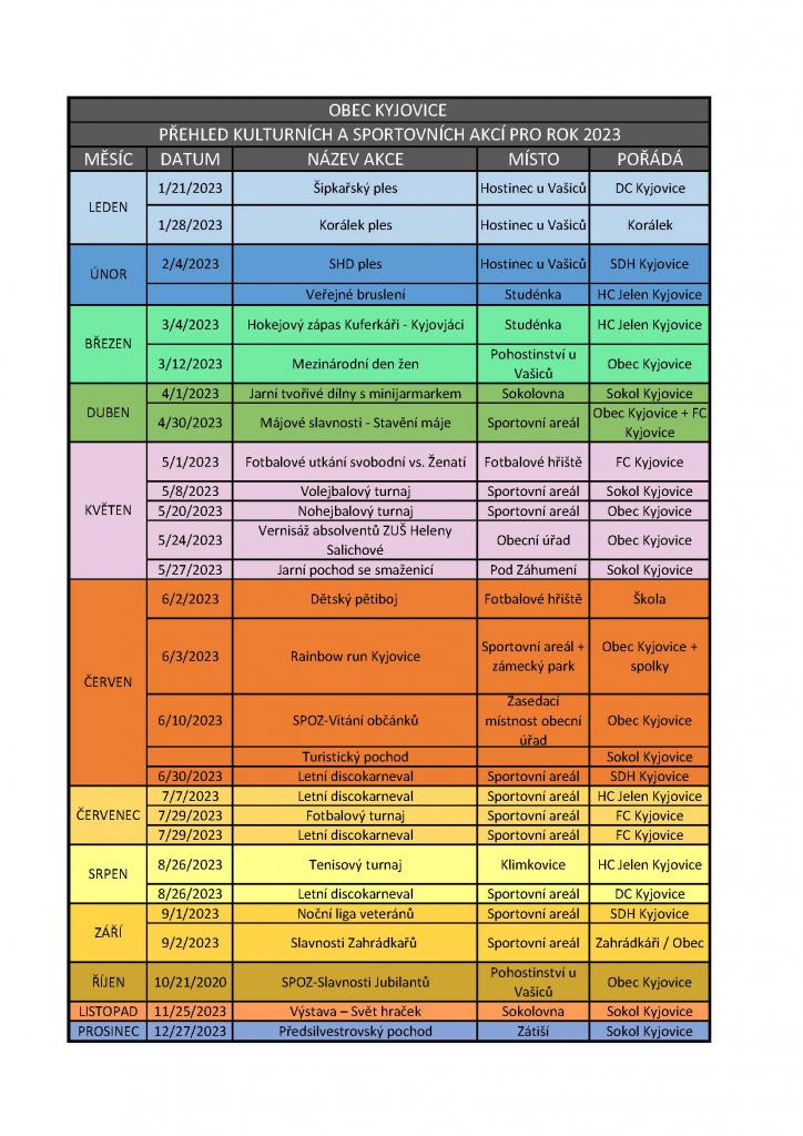 PŘEHLED KULTURNÍCH A SPORTOVNÍCH AKCÍ PRO ROK 2023